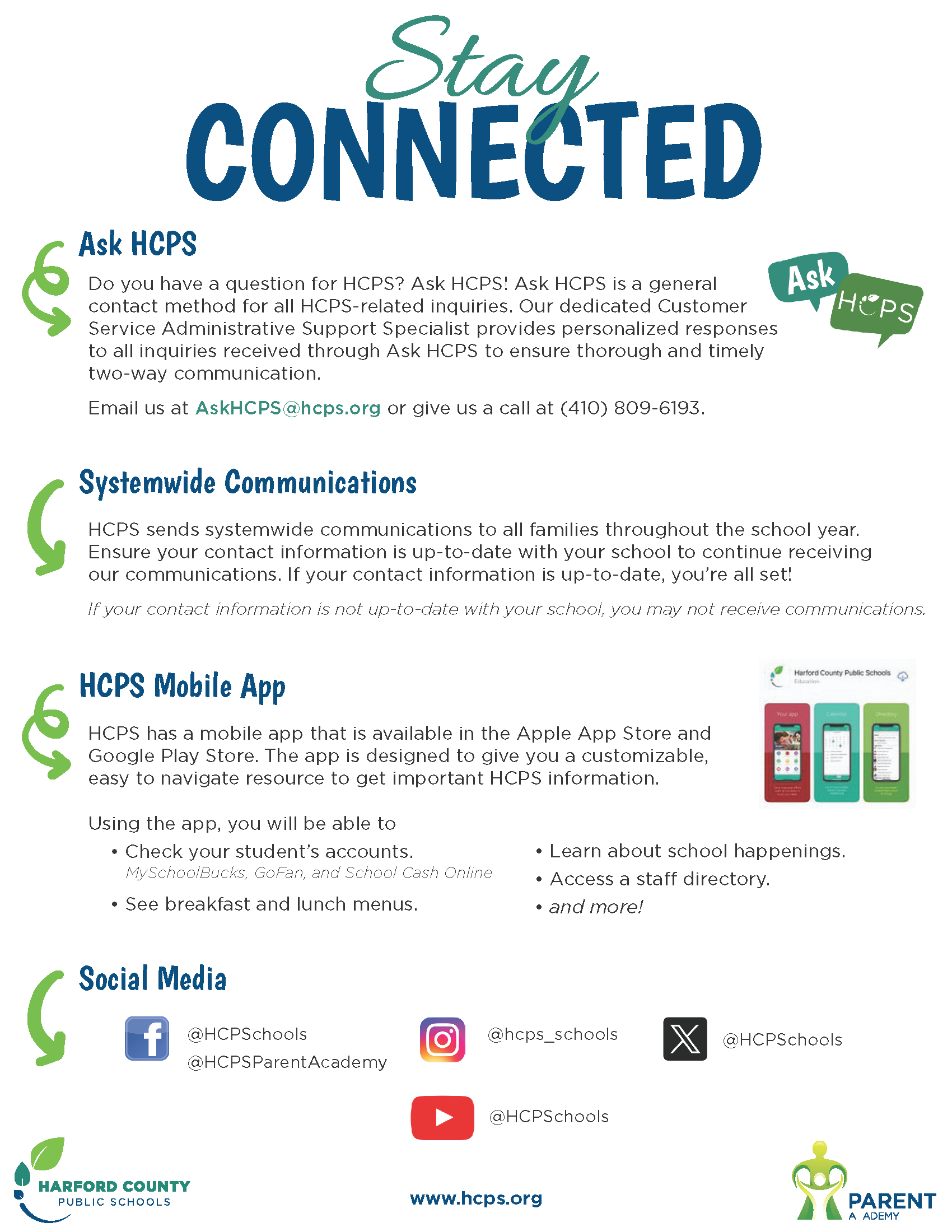 1. Download the NEW Harford County Public Schools App by visiting the Apple Store or Google Play Store.