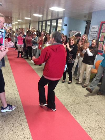 In my acceptance speech, I noted that if “it takes a village to raise a child”, then it surely “takes a city to raise a teacher”.  John Archer School is my city.  I have spent 11 of my 14 years teaching there and I absolutely love it.  The students of John Archer School are my passion!  The staff of John Archer School are my foundation!  Look at how many people were lining the “red carpet” for me the day after the announcement! (No wonder they wanted to make sure I didn’t arrive to work early that day!)